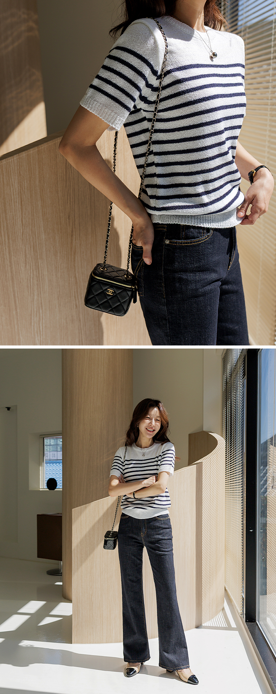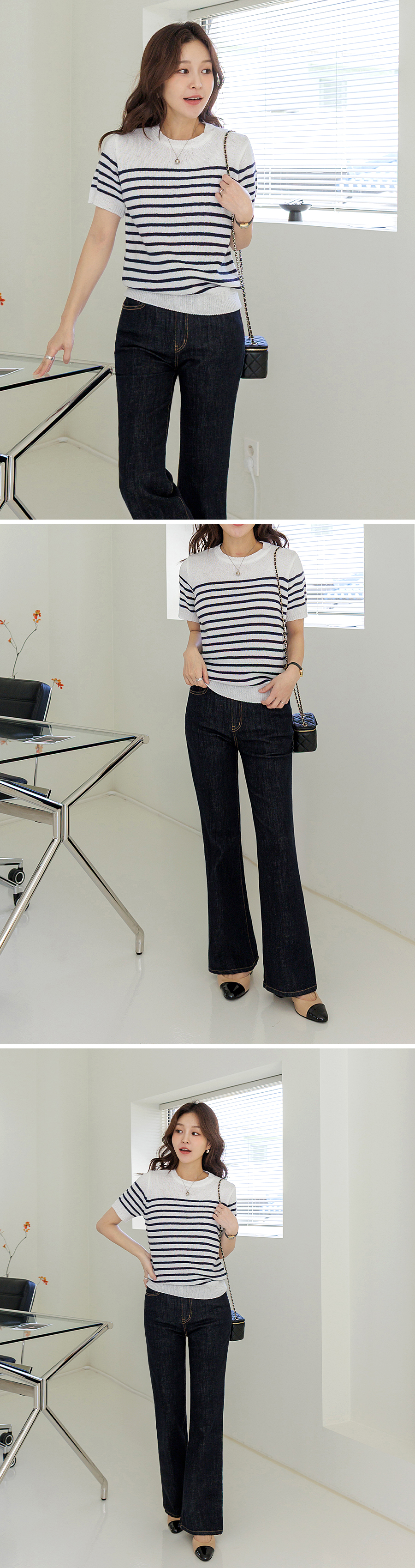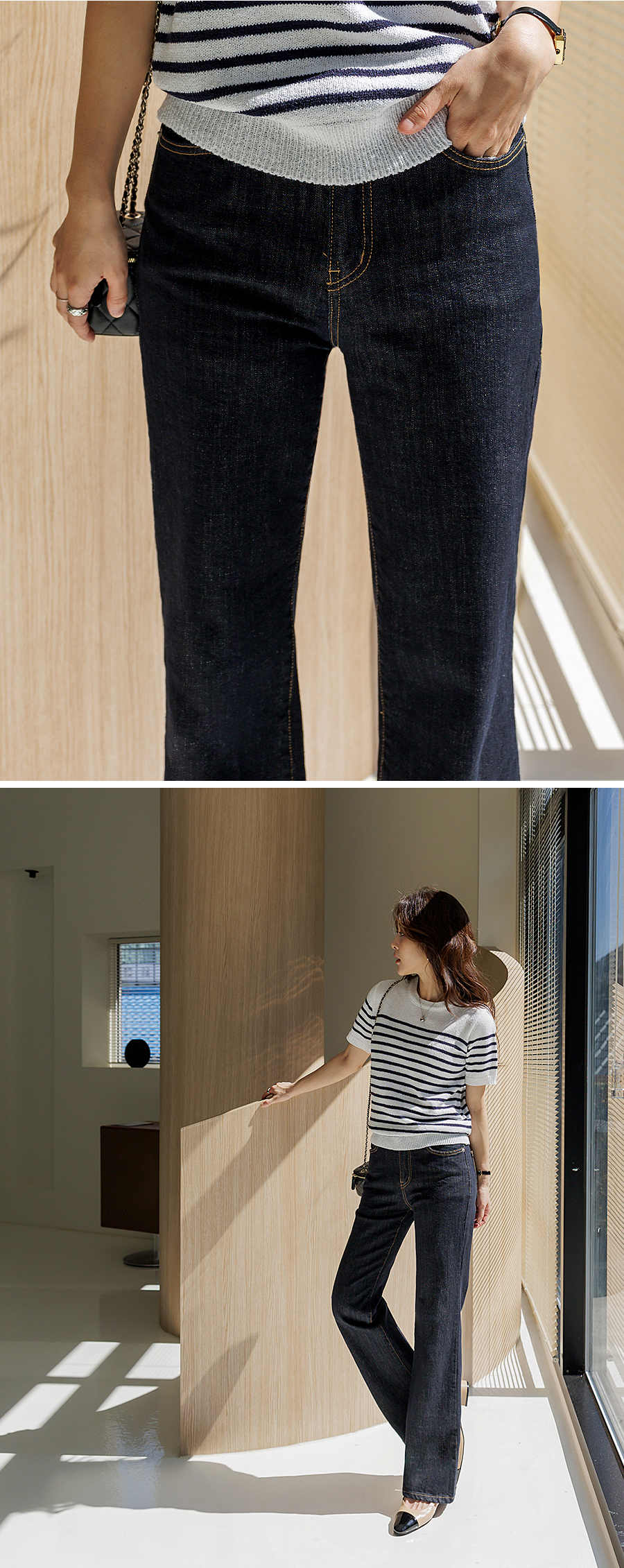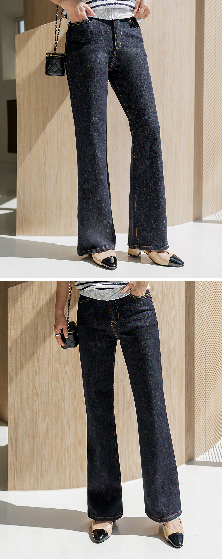 다리가 슬림해 보이는 과하지 않은 세미 부츠컷 핏